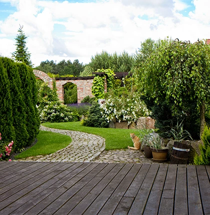 Le doghe resistenti alle intemperie creano pavimentazioni calde e accoglienti per cene estive.